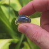 This intriguing Australian crystal honey opal comes from Lightning Ridge, Australia. The stone has two tones, with a darker core where subtle play of colour flashes as the stones is turned and a more traditional honey tansparent outer edge.
